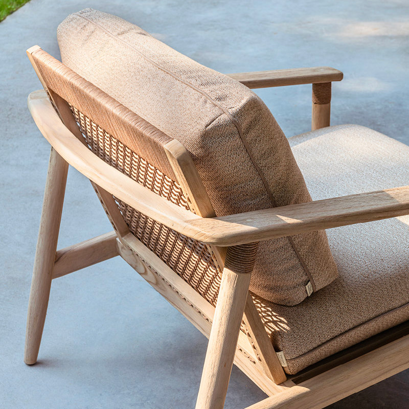 La chaise de jardin Oda est un ajout polyvalent à tout espace de vie extérieur. Conçue pour résister aux éléments, cette chaise de jardin associe des matériaux de haute qualité, notamment du teck massif, des sangles texturées et un coussin de siège et de dossier confortable. L'assise tressée à la main s'harmonise parfaitement avec l'esthétique chaleureuse et naturelle du cadre en teck, créant un look à la fois moderne et accueillant. En savoir plus...