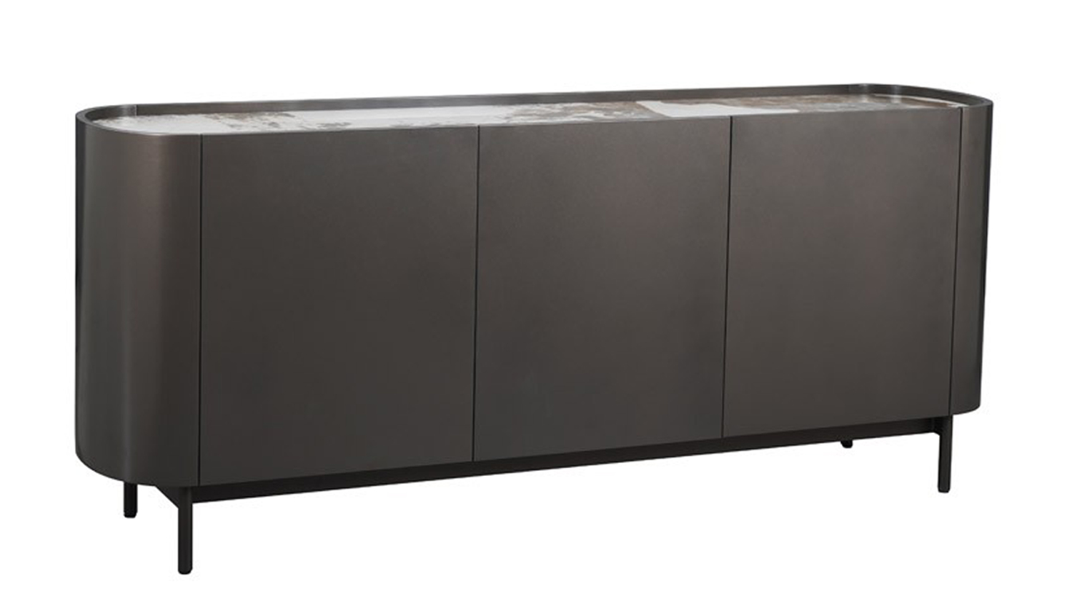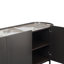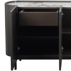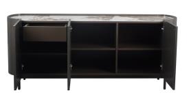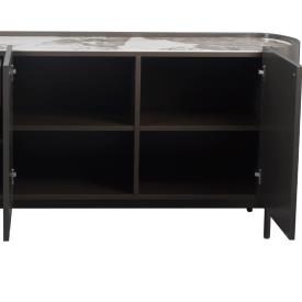 Redéfinissez le rangement avec le Buffet JOHANA ! Son design épuré et ses courbes élégantes aux reflets bronze, sublimées par un plateau marbré Pandora, en font une pièce maîtresse pour votre salle à manger ou votre salon. Pieds en métal laqué époxy bronze, structure et étagères en MDF laqué bronze, dessus en céramique Pandora 6mm