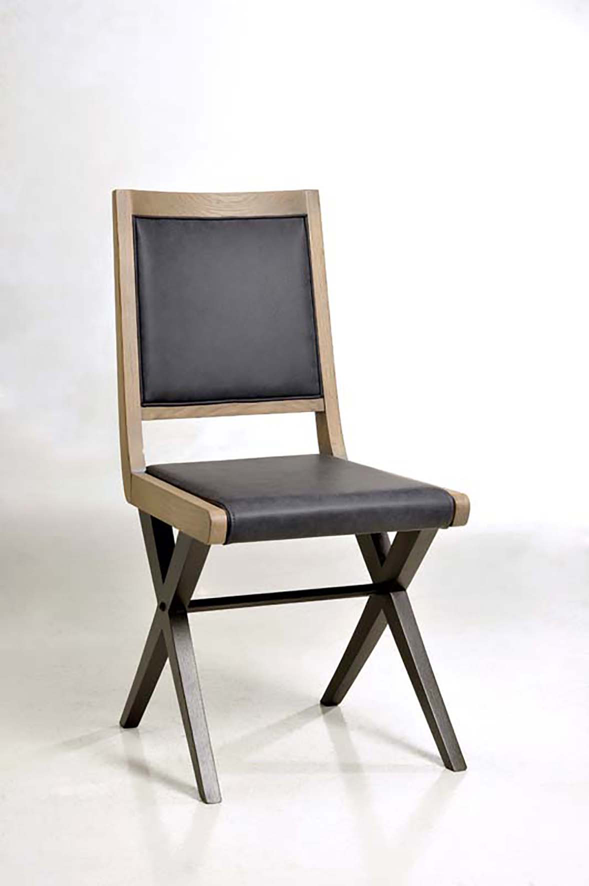 Chaise en chêne style industriel. Teinte et revêtement au choix, disponible avec ou sans accoudoirs.