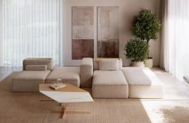 Bontempi Réf. BLKBA88F / BLKBA88FB / BLKBA88N / BLKBA88XF / BLKBA88XFB / BLKBA88XN / BLKCUS032 / BLKCUS042 / BLKCUSD16 / BLKSE120 / BLKSE152 / BLKSE88 Dimensions : l 88 x h 68 x p 88/120/152 cm Sculptural et essentiel, le canapé Blake s’impose dans l’espace comme une composition modulaire de volumes purs, en équilibre entre géométrie architecturale et confort sensoriel. La modularité s’exprime à travers trois types d’assise combinables, tandis que le dossier multifonction s’ouvre par abattant pour révéler un compartiment de rangement interne avec étagère intégrée. Les inserts en bois naturel servent de plans d’appui élégants. Les coussins, proposés en trois variantes, et les dossiers rembourrés et volumineux créent un effet monolithique raffiné, conférant au système une élégance sobre et contemporaine. canapé modulaire
