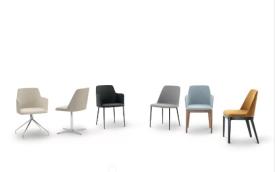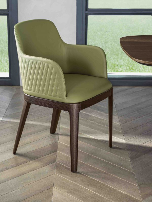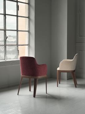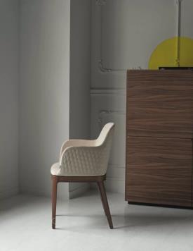 chaise sans ou avec accoudoir disponible aussi dans la version pivotant, structure en Bois massif ou Métal laqué. Coque rembourré et revêtue. Aussi disponible avec le revêtement du dossier matelassé (uniquement pour les tissus Nordic, Cuir éco et Peau Premium).
