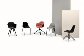 Bontempi Design. Pocci and Dondoli - Réf. 34.08 / 34.09 / 34.10 / 34.11 / 34.12 / 34.13 / 34.14 / 34.15 / 34.18 / 34.19 / 34.20 / 34.21 / 34.22 / 34.23 / 34.24/ 34.25 Dimensions : l 47/61/64 x h 81/82 x p 57/59/60 cm Chaise, chaise avec accoudoirs, pivotant ou avec roulettes, structure en Métal ou Bois, coque en Polypropylène.