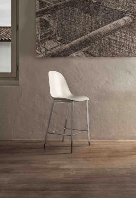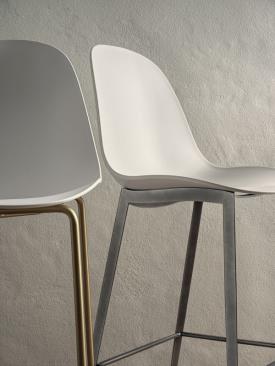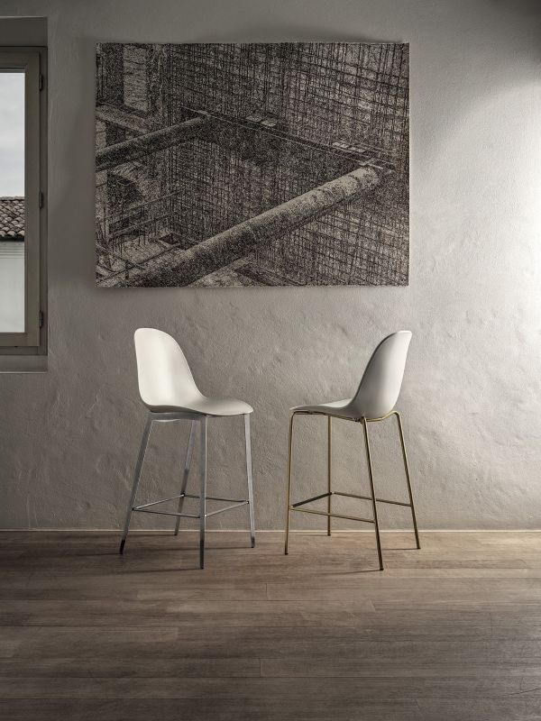 Bontempi Design. Pocci and Dondoli - Réf. 34.28 / 34.29 / 34.30 / 34.31 Dimensions : l 47/48 x h 102/112 x p 55/56 cm Tabouret avec structure en métal laqué, pieds triangulaires et tuyauxet, coque en polypropylène tabouret haut