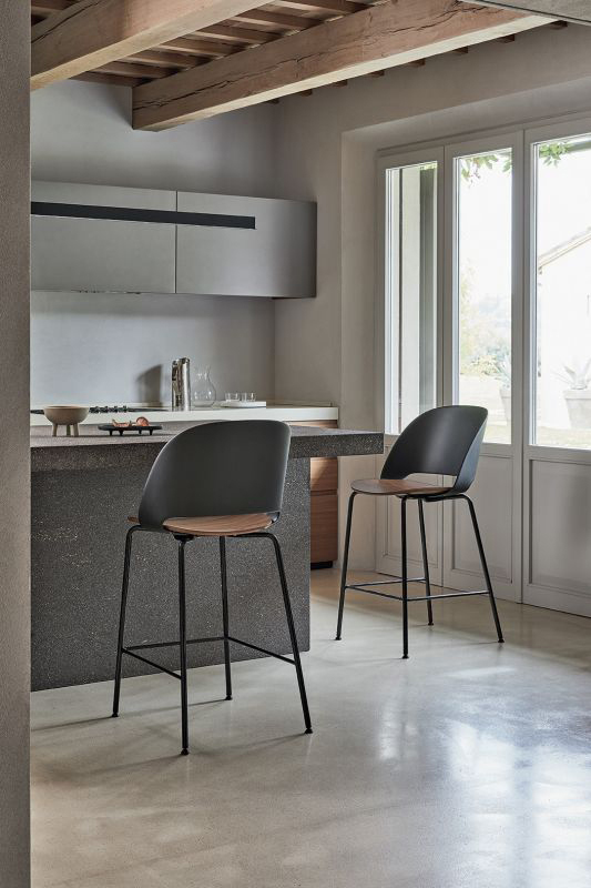 Bontempi Design. E-GGS - Réf. 34.69 Dimensions : l 49 x h 65/98 x p 55 cm tabouret bas avec structure en métal laqué, dossier en polypropylène et assise en bois ou rembourrée et revêtue en Cuir Éco, Cuir Éco Premium, Velours Technique, tessuto Nordic, Pure Virgin Wool, Velours, Tissu Kvadrat Field, Tissu Kvadrat Coda et Peau Premium.
