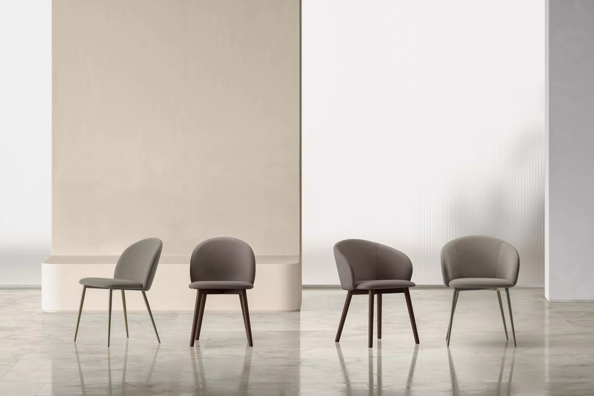 Bontempi Design. Carlesi et Tonelli - Réf. 34.56 / 34.57 / 34.76 / 34.77 Dimensions : l 50/60 x h 77/79/80/82 x p 58 cm La chaise Rebecca est une interprétation sophistiquée du confort. Conçue pour envelopper et protéger sans compromettre l’élégance, elle présente une coque en bois revêtue d’un rembourrage somptueux, créant une sensation d’intimité inégalée. Ses pieds, méticuleusement travaillés – en bois raffiné pour une allure intemporelle ou en métal léger pour une touche contemporaine – deviennent un point focal grâce à leur grâce discrète, sublimant la silhouette harmonieuse de la chaise. Également disponible avec accoudoirs, Rebecca se transforme en un véritable refuge de confort et de style, s’intégrant parfaitement à tout environnement grâce à son charme intemporel.