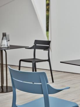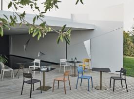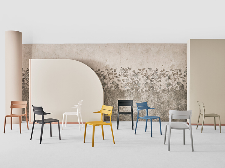 Design. Pocci and Dondoli - Réf. 40.94 / 40.95 Dimensions : l 51/56 x h 81 x p 56 cm chaise empilable avec structure intégrale en polypropylène et fibre de verre recyclable.