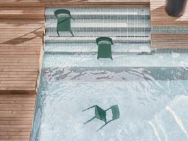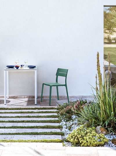 Design. Pocci and Dondoli - Réf. 40.94G / 40.95G Dimensions : l 51/56 x h 81 x p 56 cm chaise empilable avec structure intégrale en polypropylène et fibre de verre recyclé et recyclable.