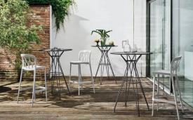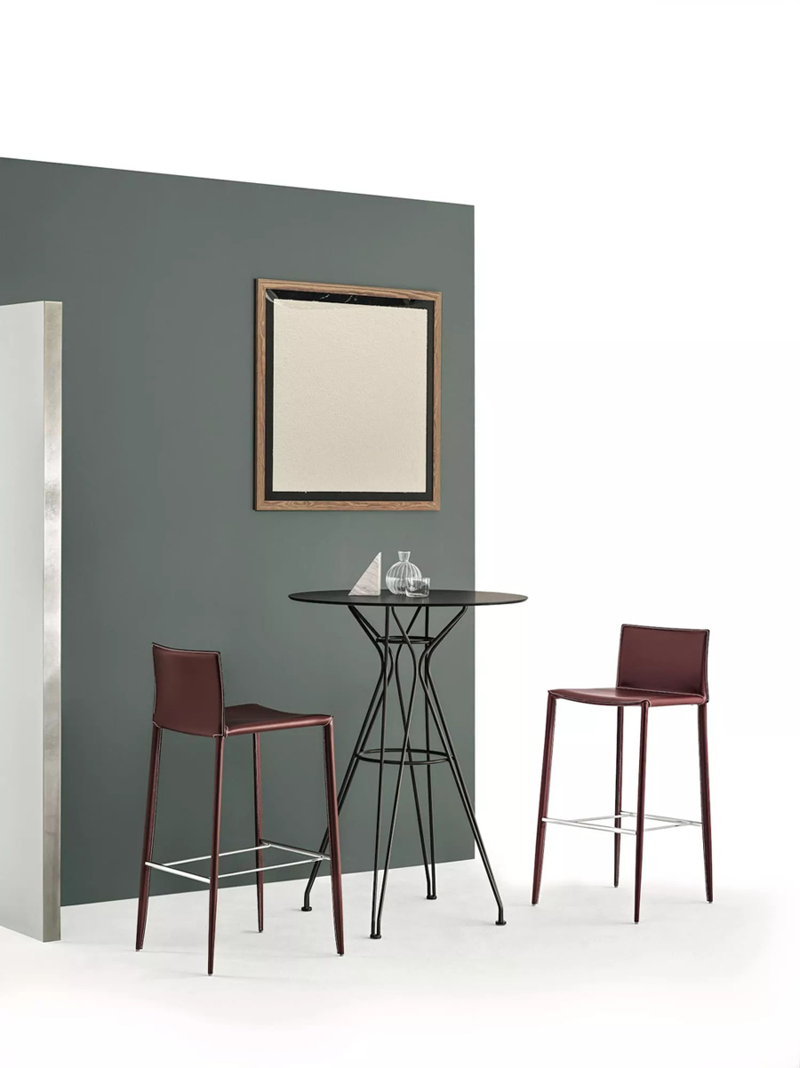 Design. Pocci and Dondoli - Réf. 20.81 Dimensions : l 51 x h 109,5 x p 51 cm Socle en Métal inox, disponible pour plateaux en stratifié, alu compact ou mélaminé. table haut