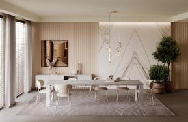 Bontempi Réf. 7T003 Dimensions : 200 x 300 cm Wave est un tapis à forte identité graphique et sensorielle. Son motif, composé de lignes douces et sinueuses formant un réseau harmonieux, crée un effet de mouvement fluide mais maîtrisé, apportant un dynamisme visuel à l’espace. Réalisé dans une teinte glacée délicate et lumineuse, le tapis joue sur le ton sur ton pour accentuer la tridimensionnalité du motif, tout en conservant une présence discrète et raffinée. Sa surface est douce et veloutée au toucher, agréable à fouler pieds nus grâce à la qualité des matériaux et à un travail soigné. Idéal dans les salons, chambres ou espaces lounge contemporains, où l’on recherche un équilibre entre style et confort.