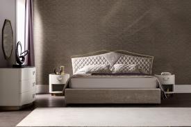 Son cadre incurvé, assemblé par des tirants internes, sublime sa ligne épurée grâce à une finition dorée. Revêtement sur mesure disponible en velours, tissu, cuir, similicuir ou tissu fourni par le client, matelassé style Cantori. Le lit Valentino est l'élément central d'une chambre classique et internationale. Disponible avec des sommiers de différentes dimensions : 160 x 200 cm (queen size) et 180 x 200 cm (king size), il est également disponible en version lit coffre (sans pied de lit).