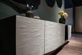 Le Buffet Prisma présente une forme sculpturale, asymétrique et irrégulière .