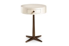 La base centrale en acier est conique selon un procédé de pliage à froid. Finition galvanoplastie laiton ou or. Dessus décoré à la main et tiroir doublé avec bouton doré. Son design moderne le rend parfait pour la chambre ou pour le salon, comme table d'appoint.