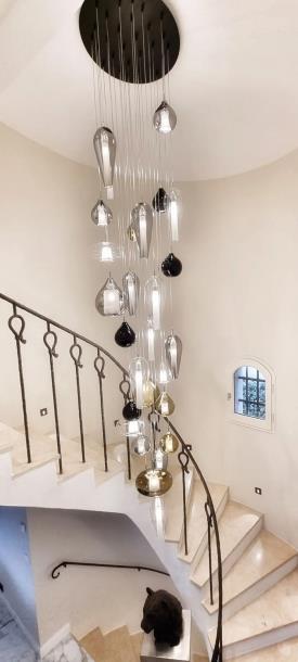 Mélange de trois verres aussi différents que complémentaires, la gamme Kahina s’illustre par ses nombreuses variétés de formes et de couleurs. Avec ces luminaires, vous suivez vos envies pour créer une suspension moderne et unique. Le verre Circé, grand classique de RIVIERA, est associé à des verreries Alegria, tout en longueur, et aux modèles Fantasia, plus imposants, pour créer un équilibre intemporel et raffiné.