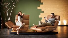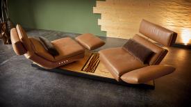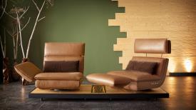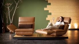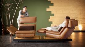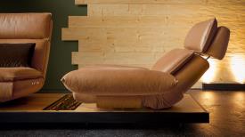 Absolument unique - de l'accoudoir au repose-pieds, du siège à la chaise longue. Multifonction, innovation, évolution. EDON est assis avec élégance sur un plateau et est aussi un véritable artiste du mouvement. Le point culminant, cependant, est dans l'accoudoir : en un mouvement fluide, il pivote pour former un repose-pieds et transforme le canapé en un fauteuil inclinable confortable. FREE MOTION 4.0 est synonyme de mode de vie innovant et durable fabriqué en Allemagne.