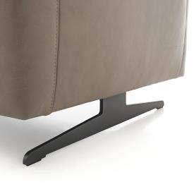 - Deux versions de pieds : patin en nickel satiné (aspect acier inoxydable), structure métallique revêtue de poudre noir mat ou pied rectangulaire en nickel satiné (aspect acier inoxydable), structure métallique revêtue de poudre noir mat, chêne (huilé), hêtre (huilé), noyer (huilé), hêtre P11 (laqué)