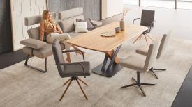 ADYSON impressionne par le moindre détail. Ses éléments cubiques aux formes organiques et au revêtement décontracté intègrent harmonieusement l'assise, les accoudoirs, le dossier et l'appui-tête. Le dossier et l'appui-tête offrent une posture ergonomique optimale : droit pour dîner, incliné pour savourer un expresso ensuite.