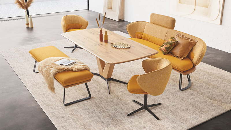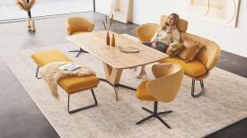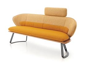 RENIO séduit par ses lignes courbes et harmonieuses qui soulignent l'allure féminine, à la fois fascinante, charismatique et d'une délicatesse harmonieuse. Le mélange de matières et l'appliqué surpiqué au niveau des reins accentuent visuellement la silhouette fluide, qui se prolonge dans l'accoudoir fuselé. L'appui-tête pivotant parachève ce style dynamique.