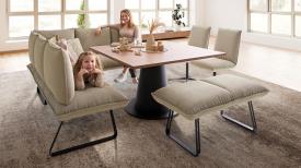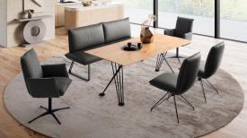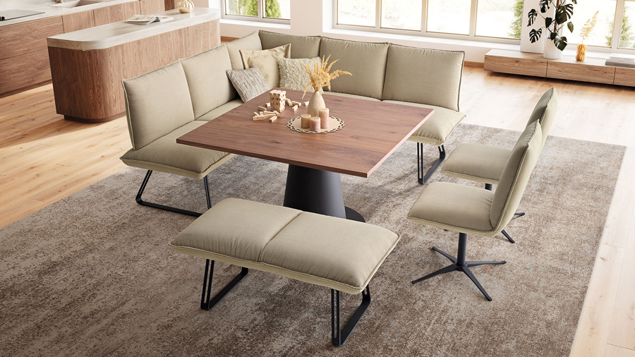 Dans la salle à manger, SOUL prolonge harmonieusement le style de BUDDY, créant ainsi une transition fluide entre le salon et la salle à manger. La banquette reprend également les lignes épurées et le design moderne et épuré. Alliant un confort d'assise exceptionnel, SOUL invite à la détente et à la convivialité. Partagez des moments précieux à table avec vos proches et vos invités.