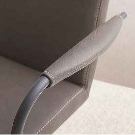 Chaise avec ou sans accoudoirs, finition nickel satiné (aspect inox) ou noir mat structurel thermolaqué, avec revêtement en option.