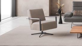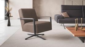 Plateau rotatif et accoudoir métallique en nickel satiné (aspect acier inoxydable) ou en noir mat structurel thermolaqué