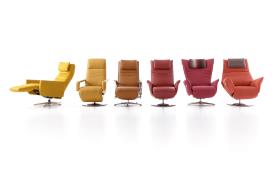 Que ce soit manuellement ou avec un moteur, le réglage en douceur du dossier et du repose-pieds est simple et se fait en un rien de temps. Les accoudoirs légèrement incurvés vers l'extérieur et donnent à STAR un design unique, semblent flotter dans la pièce.