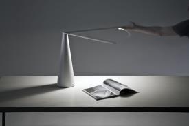 Martinelli Luce Design. Brian Sironi, Réf. 807/J Dimensions : 60 x 38 cm Lampe de table pivotante à lumière directe. Structure en aluminium couleur blanc, noir et jaune. Allumage et extinction par rotation du bras. Source de lumière à LED. Driver électronique sur la prise. La lampe a été dessinée par Brian Sironi en 2009. C'est en tournant le bras de la lampe Elica que la lumière s'allume et s'éteint. Elle ne possède pas d'interrupteur pour préserver l'harmonie de sa forme; Cette lampe à la forme d'hélice de pure lumière, qui, dans un jeu amusant, nous emporte dans un univers de rêve et de fantaisie. Couleur de la structure : Blanc, poli, RAL 9003 Couleur du diffuseur : Blanc, opale Matériau de la structure : Aluminium