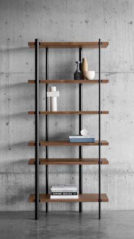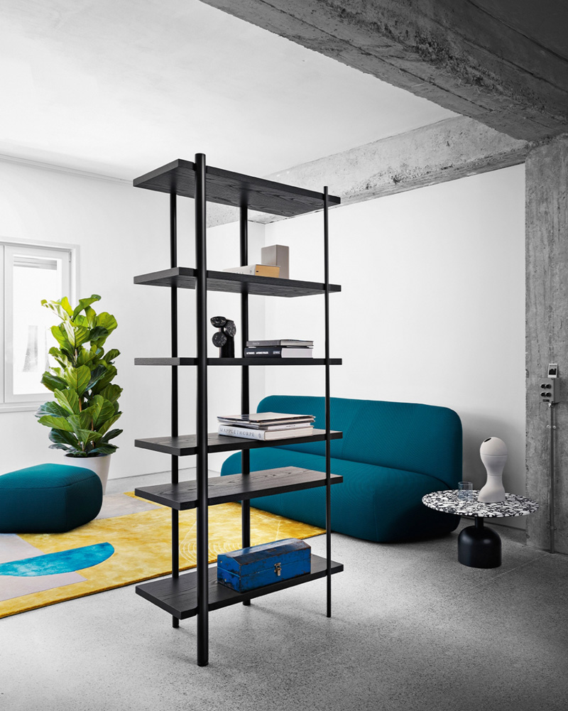 Milonga est une bibliothèque élancée, la voici insérée avec une cadence délicate dans les espaces. Utilisé comme séparation en milieu de pièce ou plus traditionnellement contre un mur, c'est une pièce incontournable pour organiser une bibliothèque personnelle. Technique également audacieuse et distinctive, Milonga joue avec les couleurs des tubes et la disposition des étagères. C'est précisément la succession des étagères qui donnent du mouvement à la bibliothèque, en répétant le rythme des lignes imprimées sur les cahiers de notre enfance.