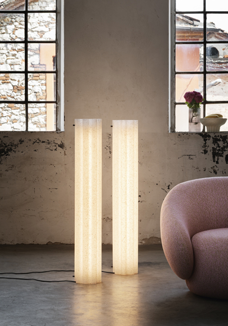 Lucerama est une lampe tubulaire qui s'est donné un style : habillée d’un abat-jour ondulé en PE recyclé, elle diffuse la lumière longitudinalement pour donner naissance à une atmosphère mêlant raffinement et sophistication. Elle donne l’impression de flotter en apesanteur dans les salons.