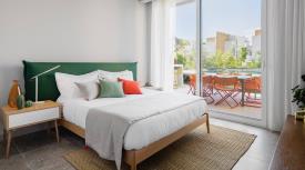 Le Shiko est un rituel des lutteurs de Sumo qui consiste à lever la jambe et à frapper le sol du pied, avec énergie, pour chasser les esprits. Comme ce rituel, nous avons dessiné un lit qui évoque la solidité et la sécurité et qui trouve dans le moelleux de la tête de lit toute sa force.