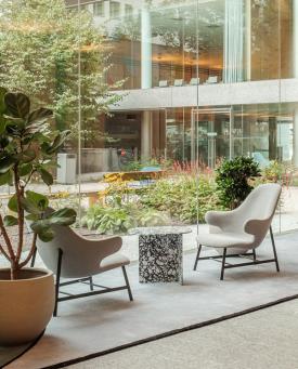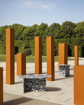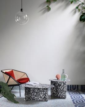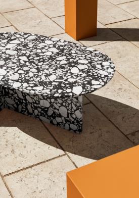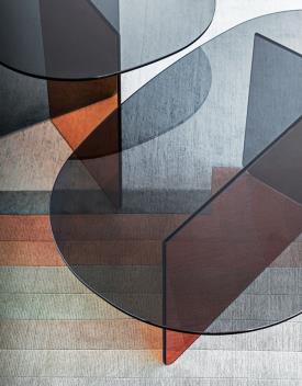 Chap est un objet primaire, qui dialogue avec la forme et la couleur. Organique et de goût primitif, elle devient un élément essentiel qui séduit avec la texture décorative du marbre Palladio Moro ou avec les transparences du verre.