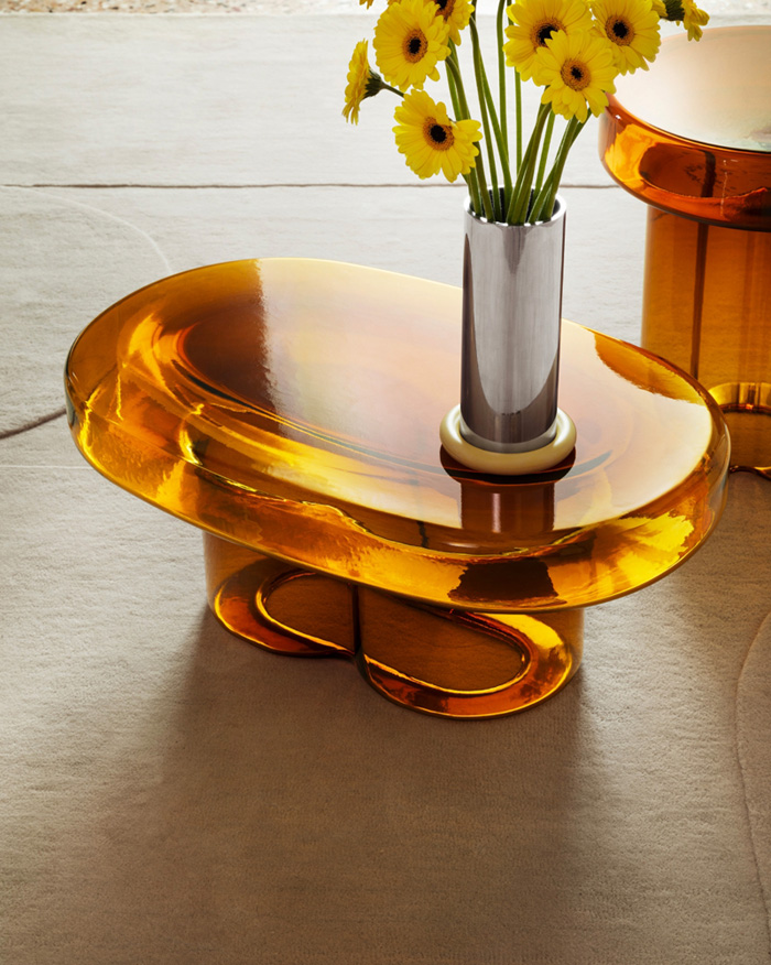 Une tige de plus ou de moins : ici, Soda n’en a que deux et son plateau a une forme allongée. Lisse comme une planche de surf, elle évoque la fluidité du design français des années Cinquante, mais avec notre trait « bold » caractéristique. Seule, elle est fascinante, mais c’est dans les compositions qu’elle révèle son côté joyeux, brisant la nature statique des formes plus basiques.