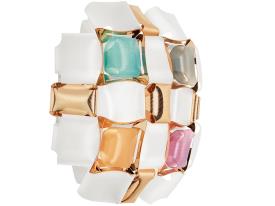 Mida s'inspire de la joaillerie de haute couture. Un pavé de pierres précieuses orne un décor presque invisible, et des cabochons polis sont dispersés géométriquement sur une corolle florale avec des pierres soyeuses et irisées. Le designer a utilisé des pierres précieuses colorées et métalliques pour donner vie à la collection de 3 tailles et 5 combinaisons de couleurs ; chacune est fabriquée à la main et dispose d'un système magnétique intégré qui facilite l'installation et l'entretien.