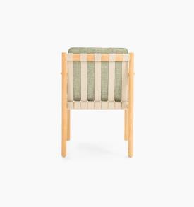 Conçue pour résister aux éléments, cette chaise de jardin associe des matériaux de haute qualité, notamment du teck massif, des sangles texturées et un coussin de siège et de dossier confortable. L’assise tressée à la main s’harmonise parfaitement avec l’esthétique chaleureuse et naturelle du cadre en teck, créant un look à la fois moderne et accueillant.